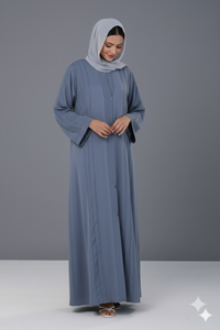 Our Ultimate Basic Abaya is crafted from Luxurious Nida fabric for supreme quality and comfort together. Perfect for daily use and umrah trips, this abaya effortlessly combines style and ease with it's front open style with buttons. It is the perfect choice for Umrah as it comes with comfortable sleeves that are wudhu-friendly. It has the perfect amount of flare and flowiness allowing ease while walking ensuring breathability.